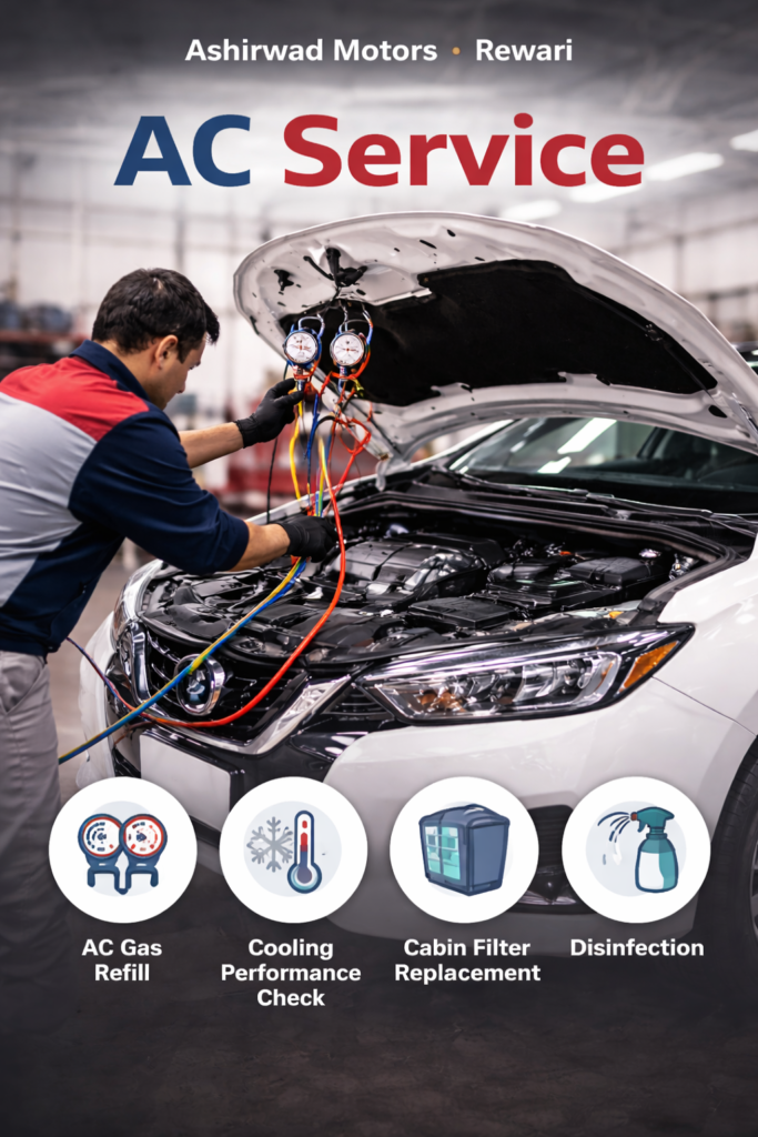 A properly working car air conditioning system is essential for comfortable driving, especially in hot weather. If your car AC is not cooling properly or making unusual noises, it needs expert attention. At Ashirwad Motors, we offer reliable car AC repair and service in Rewari to restore efficient cooling and driving comfort.